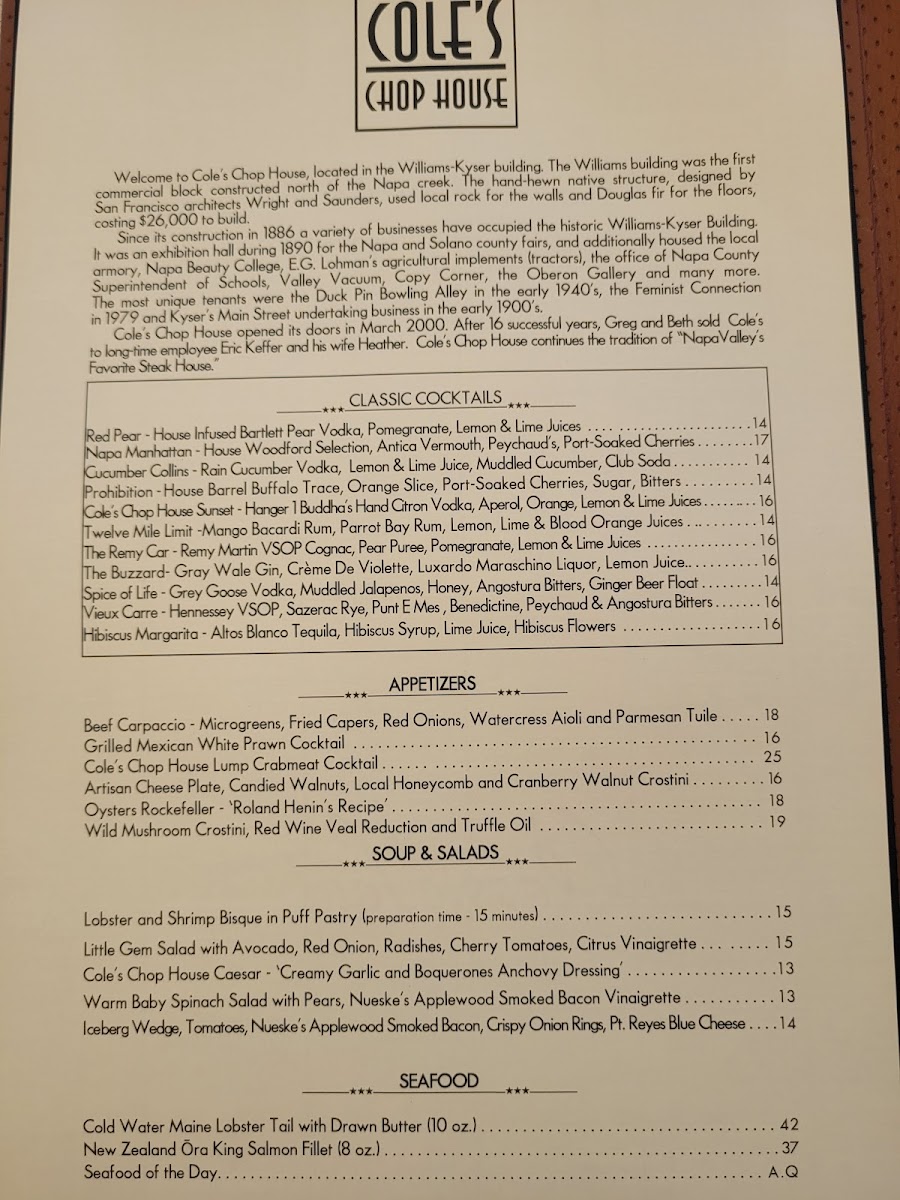 Welcome to Cole's Chop House, a premier dining destination in Napa, California. This upscale eatery at 1122 Main St. is renowned for its exceptional steaks and sophisticated ambiance. As the reviews resonate, guests are consistently impressed by the impeccable service and quality of the dishes.